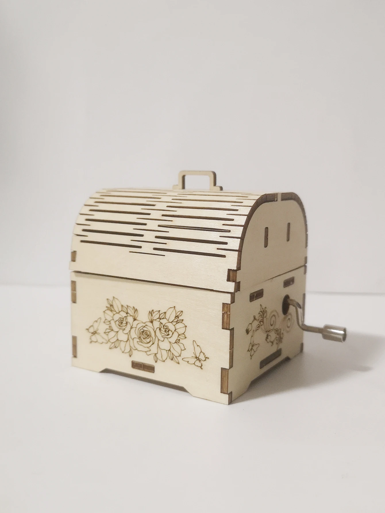 3D Wooden Hand-Crank Treasure Music Box Kit – “You Are My Sunshine” DIY Model