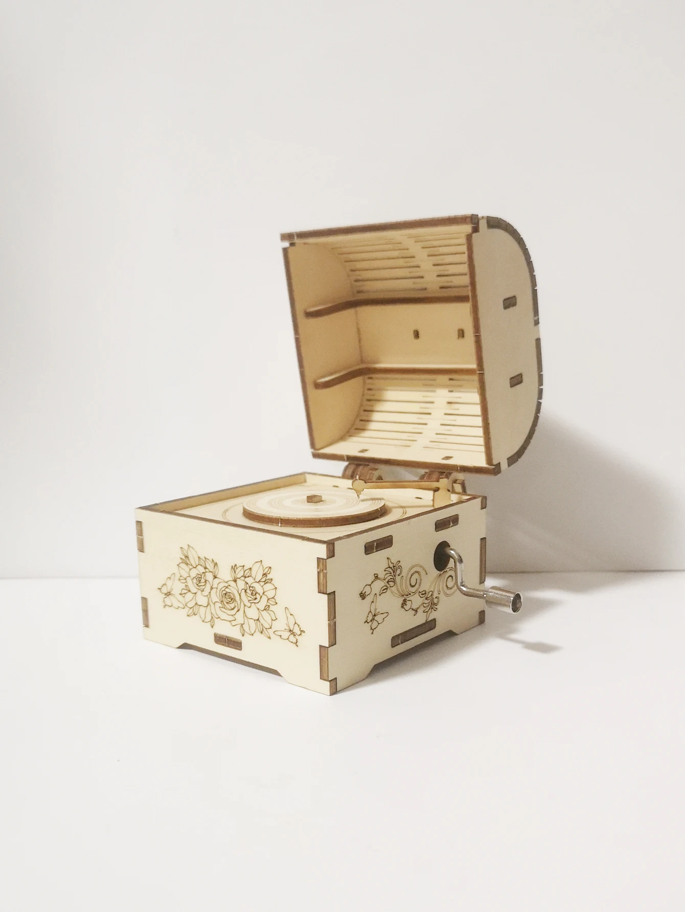 Crafted from premium, eco-friendly wood, the precision laser-cut pieces fit together smoothly without the need for glue. Once assembled, simply turn the hand crank to bring the charming music box to life.