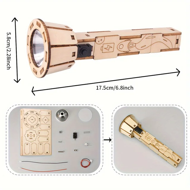 3D Wooden Flashlight Puzzle Kit – DIY Physics Science Model Set
