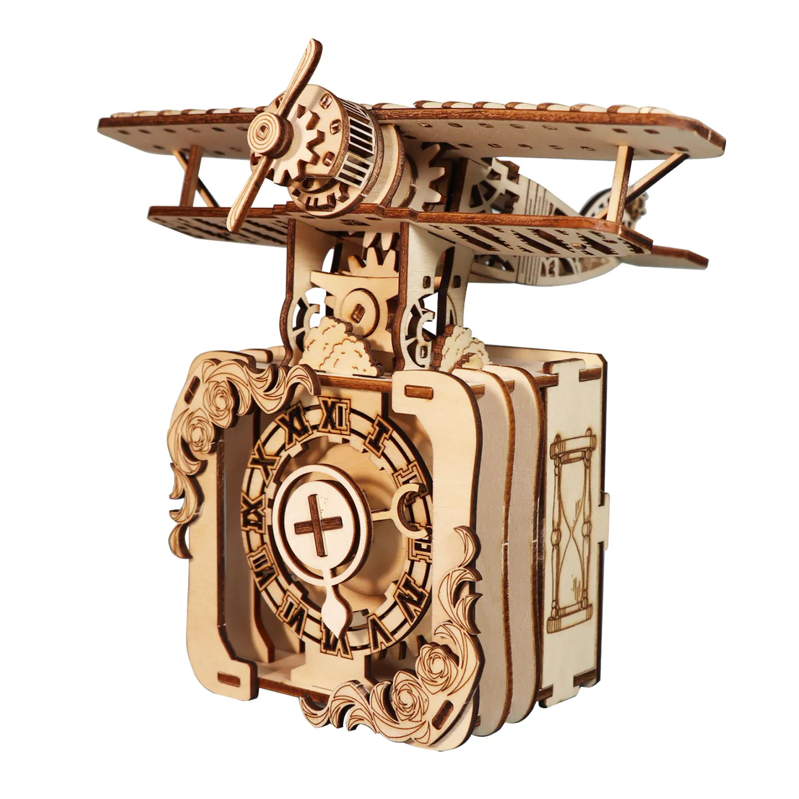 Made from premium, eco-friendly wood, the precision laser-cut pieces fit together smoothly without glue. As you assemble the intricate mechanical structure, the airplane comes to life with detailed moving parts and a built-in music box.