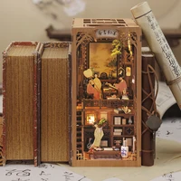 DIY Book Nook Miniatures Shelf Insert Dollhouse Model Roombox Building Kit Wooden Bookshelf Toys Bookend for Xmas Gifts