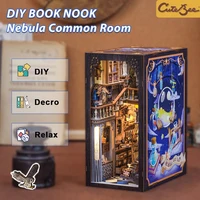 Book Nook Miniature Doll House Kit With Touch Light Dust Cover Booknook Toys For Birthday Gifts Magic Nebula Common Room